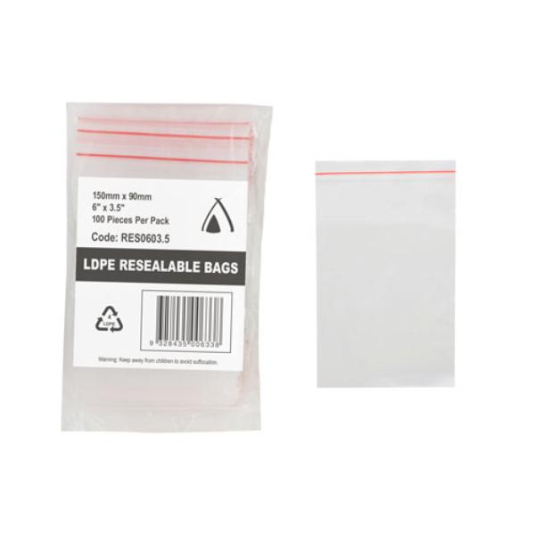 Resealable Bag 6x3.5" 150x90MM 100/Pack