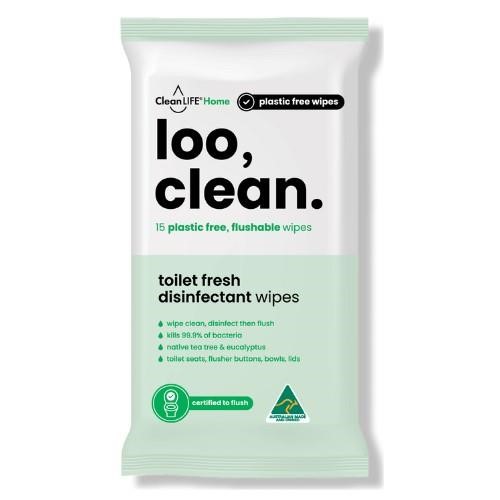 Clean Life loo clean are flushable disinfectant wipes to clean away bacteria from toilets and surrounds