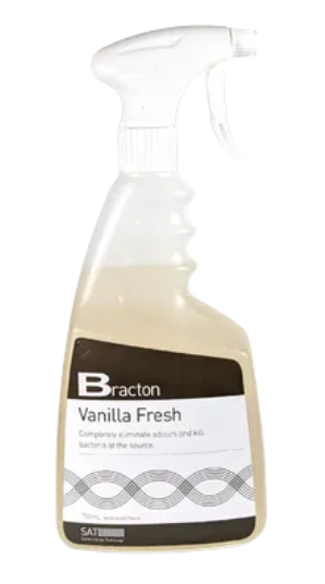 Commercial-grade odour eliminator formulated with a rich vanilla fragrance to remove unpleasant smells from indoor areas