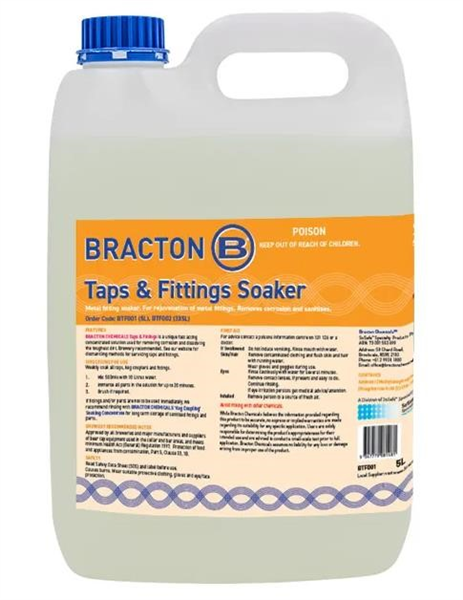 Bracton Tap & Fittings Soaker is a powerful, brewery-approved concentrated cleaner designed to remove beerstone, mould, and deposits from draught beer system fittings
