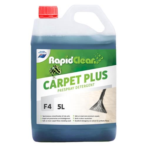 • RapidClean Carpet Plus is an all-in-one carpet cleaning solution that doubles as an extraction detergent, pre-spotter, odour suppressor, and deodoriser