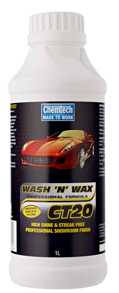 Chemtech CT20 Wash ’n’ Wax is a concentrated, rich gel specially formulated to gently break through the toughest road grime while leaving a streak-free, mirror-like finish on vehicles