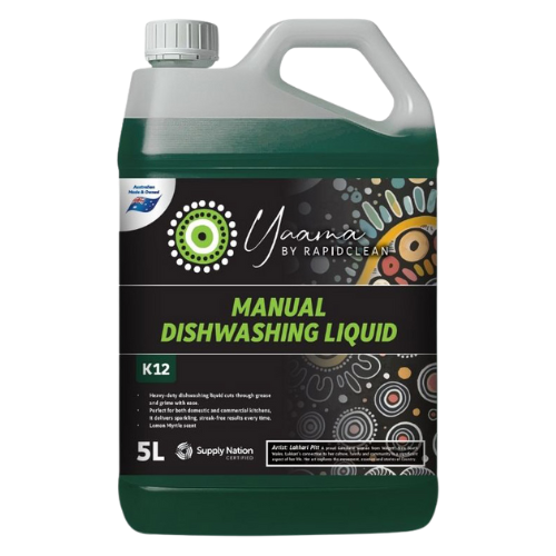 • Harnessing the natural freshness of Lemon Myrtle, RapidClean Yaama heavy-duty dishwashing liquid cuts through grease and grime with ease