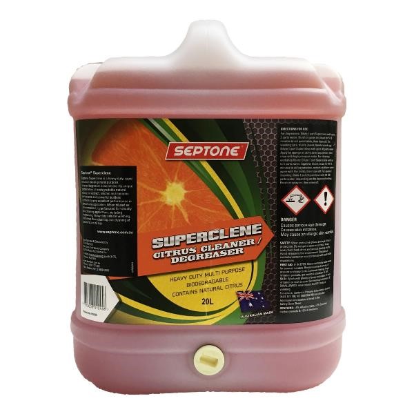 Septone Superclene Citrus Degreaser is a heavy-duty general-purpose degreaser and cleaner concentrate, citrus-based and biodegradable