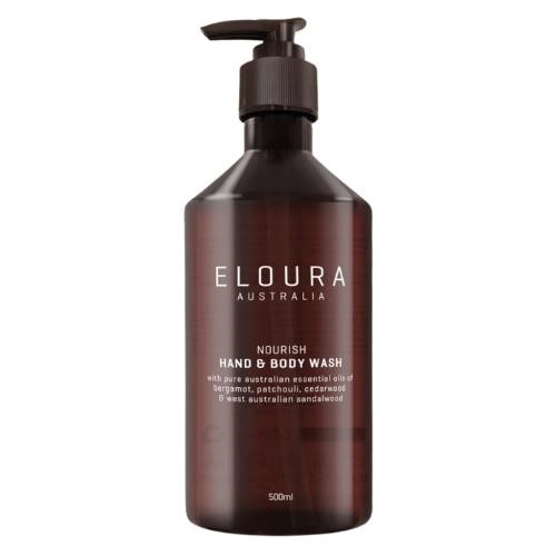 Eloura Nourish Hand & Body Wash is ustainably sourced, vitamin rich pure Australian essential oils of bergamot, patchouli, cedarwood and West Australian sandalwood, in a unique formula that balances nature and science to clean and soothe the skin