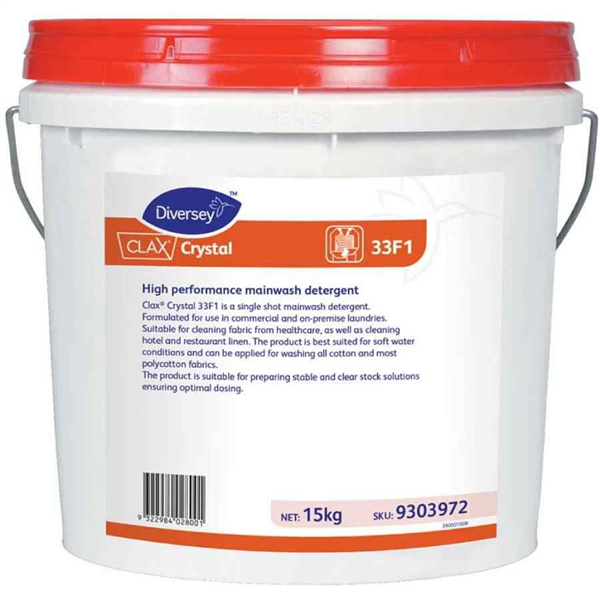 Diversey Clax Crystal 33F51 Laundry Powder 15kg is a high-performance detergent formulated for commercial and institutional laundry operations