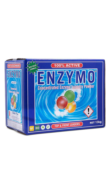 Clean Plus Laundry Powder Enzymo 15kg is a heavy-duty enzyme-based detergent formulated for high-volume commercial laundry applications