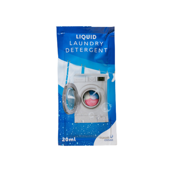 Accom Assist Laundry Liquid Detergent Sachets 20mL are single-use detergent portions designed for convenient, hygienic laundry washing