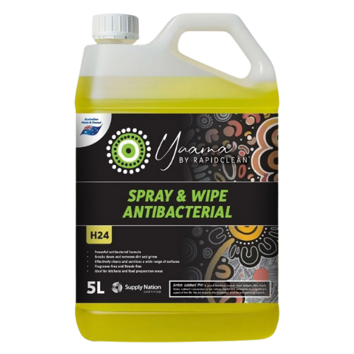 RapidClean Yaama Spray & Wipe is a powerful antibacterial formula that breaks down and removes dirt and grime while combining a specialised blend of quaternary compounds, alcohol, and non-ionic surfactants