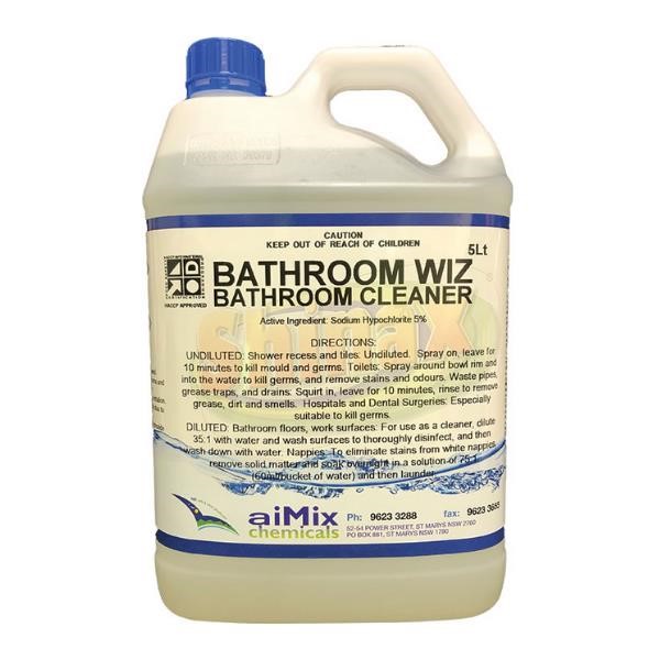 Aimix Bathroom Wiz is a fast-acting, high-performance bathroom cleaning solution formulated with stabilized sodium hypochlorite for superior disinfection and cleaning power