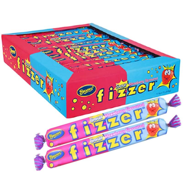 Sour Strawberry flavoured Fizzers are a delicious, fruity and fizzy chewy treat, Beacon Fizzer Sour Strawberry Lollies are a popular Australian candy that has been around for many years