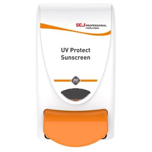 Dispenser Deb Sun Protect 1L is a wall-mounted dispensing unit designed to hold a 1 litre cartridge of sun protection product