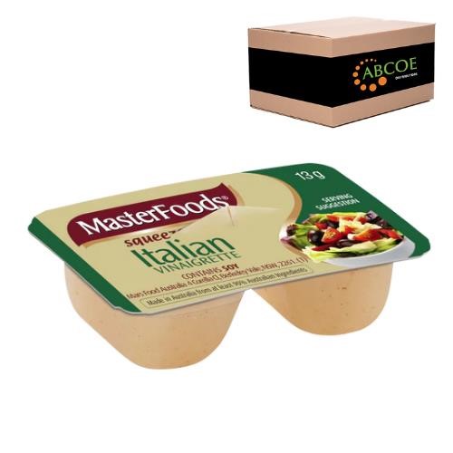 MasterFoods Italian Vinaigrette Portion Control comes in a convenient 13g sachet and carton of 100, making it perfect for serving at cafes, bed and breakfasts and on flights