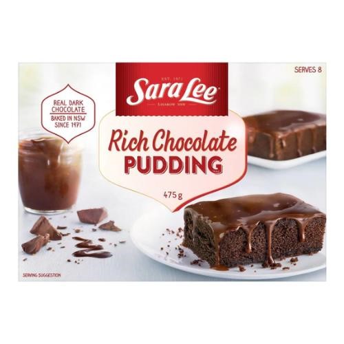 Chocolate Pudding: wheat flour (thiamine), sugar, water, egg, butter, canola oil, choc filling, cocoa, raising agents (450, sodium bicarbonate), dark