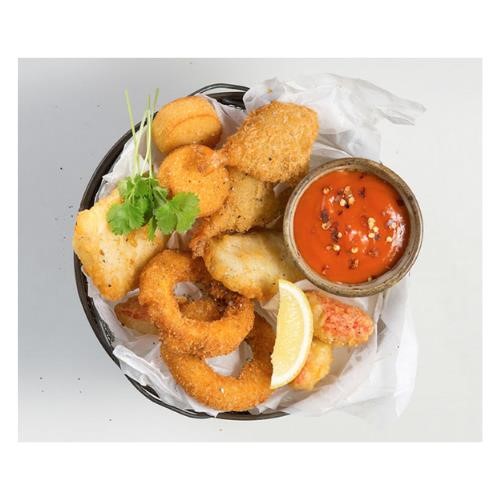 Contains: 3 crumbed prawn cutlets, 1 Tempura natural fish fillet, 2 crumbed squid rings, 1 crumbed seafood bite, 2 battered seafood pieces packed in a portion bag