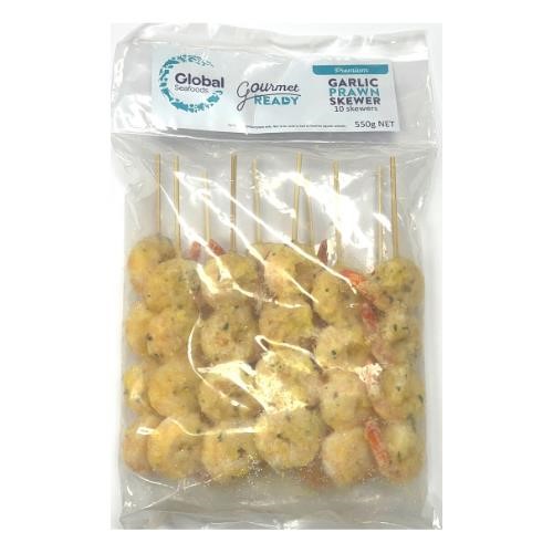 Global Seafoods Garlic Prawn Skewer 550g