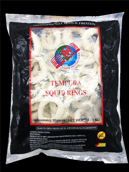 Tender Pacificus Squid tubes cut into rings and coated with A&T’s tempura batter
