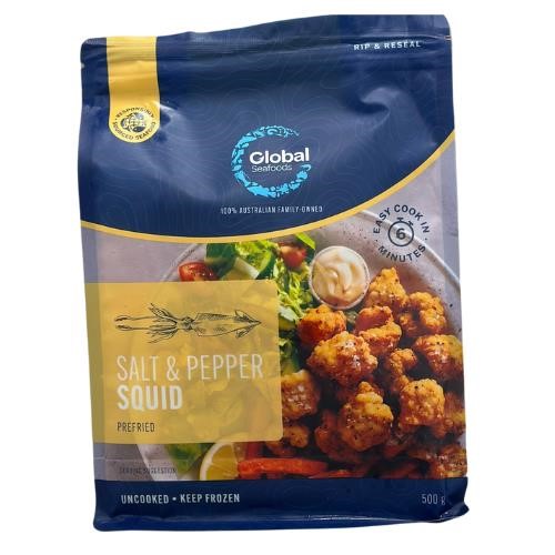 - Global Seafoods tender pieces of wild caught squid lightly seasoned in our classic salt and pepper coating