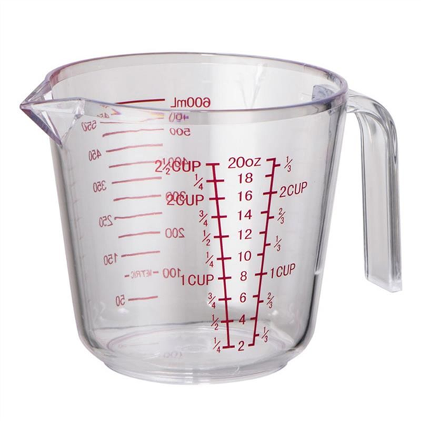 Ideal for both dry goods and liquids, it features calibrated measurement markings in millilitres, ounces and cups to accommodate any recipe 600ml capacity BPA free Calibrated to Australian measuring standards Millimetre, ounce and cup measurements Pouring spout Dishwasher safe – top shelf