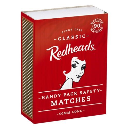 Redheads Handypack Matches are 50mm in length being longer than the Redheads Safety Matches allowing for longer burn and a more convenient light every time