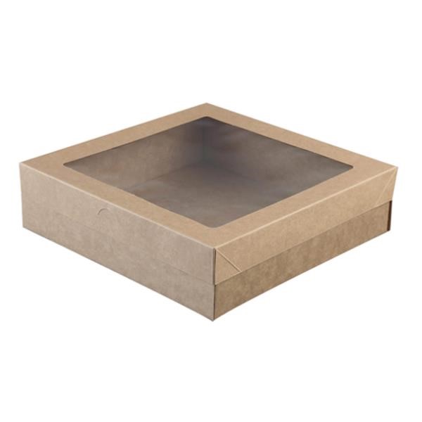 Made from brown kraft paper with a clear plastic window, these catering boxes are not only environmentally friendly but also stylish and sleek looking