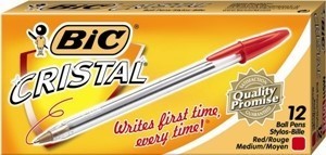 BIC CRISTAL BALLPOINT PENS MEDIUM RED BOX 12