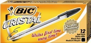 BIC CRISTAL BALLPOINT PENS MEDIUM BLACK BOX 12