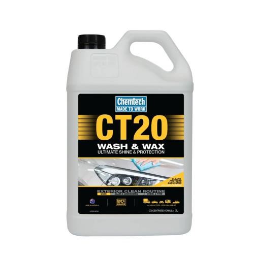 Chemtech CT20 Wash ’n’ Wax is a concentrated, rich cleaning gel specially formulated to gently break through tough road grime while leaving a streak-free, mirror-like finish on all vehicles