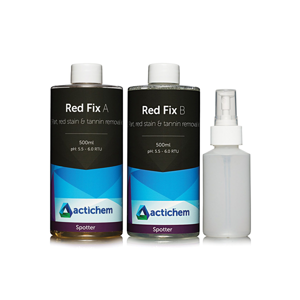 Actichem Red Fix Kit 500mL is a specialised stain treatment solution designed to remove stubborn red dye stains caused by wine, cordial, soft drinks, food colouring, and fruit spills