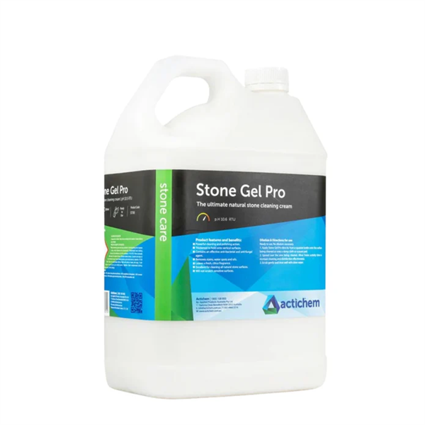 Actichem Stone Gel Pro 5L is a professional-grade gel cleaner formulated specifically for cleaning and restoring stone, masonry, and hard surface materials
