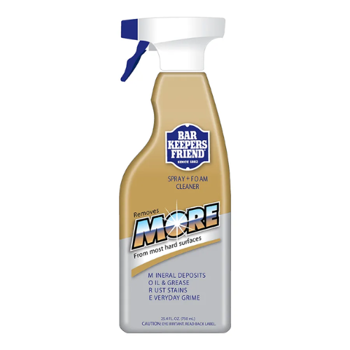 • Easily remove stubborn dirt and stains from your household surfaces with the Bar Keepers Friend 750ml More Spray & Foam
