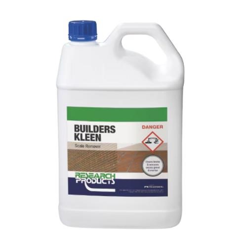For scale, lime, and rust: dilute 1 part Builders Kleen with 3 parts water; apply via brush, foam, or pour; agitate; rinse thoroughly; repeat if needed