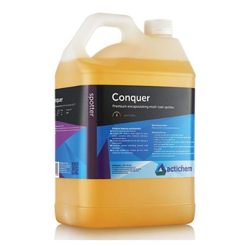 Conquer is a stain remover for carpets and upholstery, The unbeatable multi-task spotting solution effective on a wide range of water based and oily stains, with the added benefit of anti-resoiling encapsulation technology