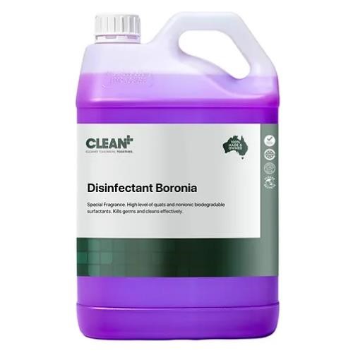 Disinfectant Boronia – Commercial Grade is a purple thin liquid with a pleasant boronia fragrance, which deodorises, cleans and disinfects in one action