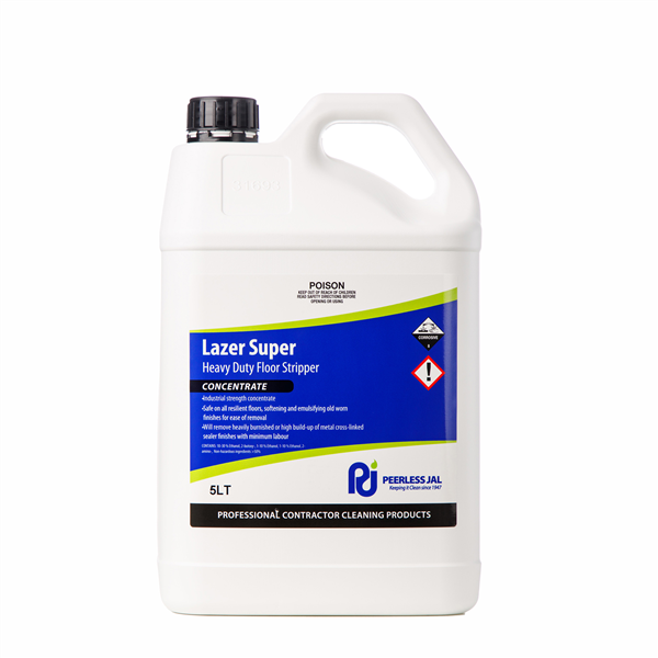 • Lazer Super is a heavy-duty, industrial-strength floor stripper designed to remove heavily burnished or high-build-up metal cross-linked sealer finishes with minimal labour