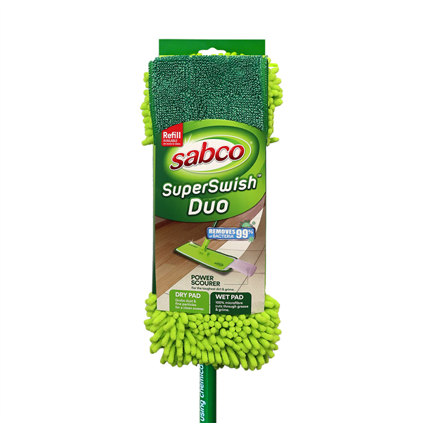 The Sabco SuperSwish Duo is a combined wet-and-dry floor cleaning system ideal for timber, vinyl, tile and other hard floor surfaces