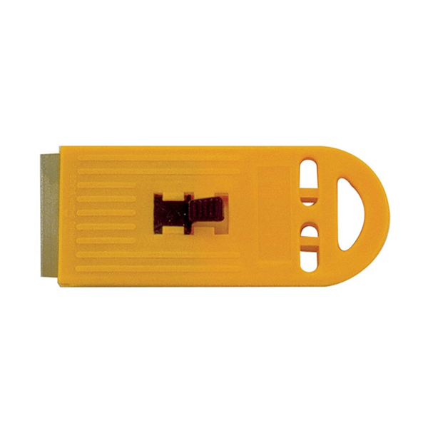 Constructed from impact-resistant yellow plastic with a secure metal cutting edge; the scraper is supplied with one blade for immediate use