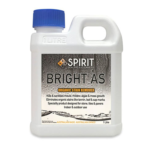Bright As is a concentrated, chlorinated cleaner and organic stain remover formulated for interior and exterior use