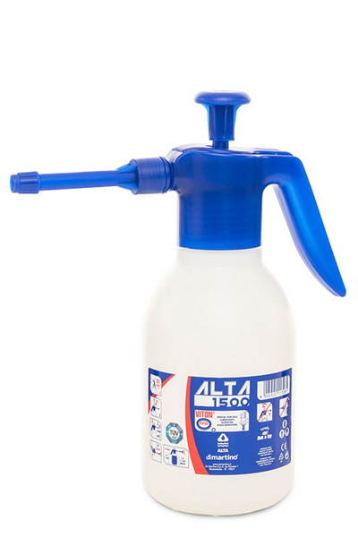 Looking for pressure pump sprayer for professional applications? Alta 1500 pressure sprayer with 1.5L-2L capacity is made with FPM (VITON) seals, useful for spraying most of the existing liquids as long as they respect the plastic parts of the pumps