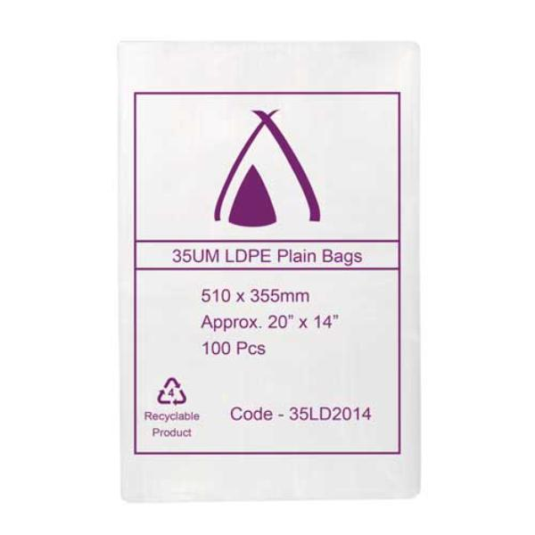 Poly Bag 20x14" 510x355mm 35UM 100 Pack