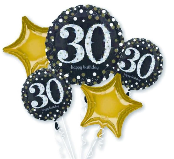 BALLOON FOIL BOUQUET SPARKLING 30TH 5/PK UNINFLATED