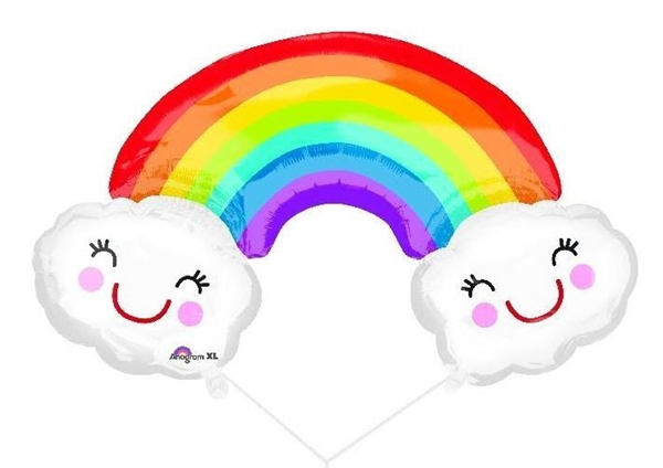 Shape Rainbow with Clouds 2 Sided Design 93cm x 55cm Foil Balloon (Self sealing balloon, Helium or air inflation depending on required use) Includes Ribbon