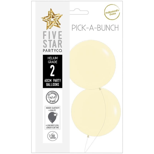 Five Star Balloons Pastel Yellow 60cm 2/Pk