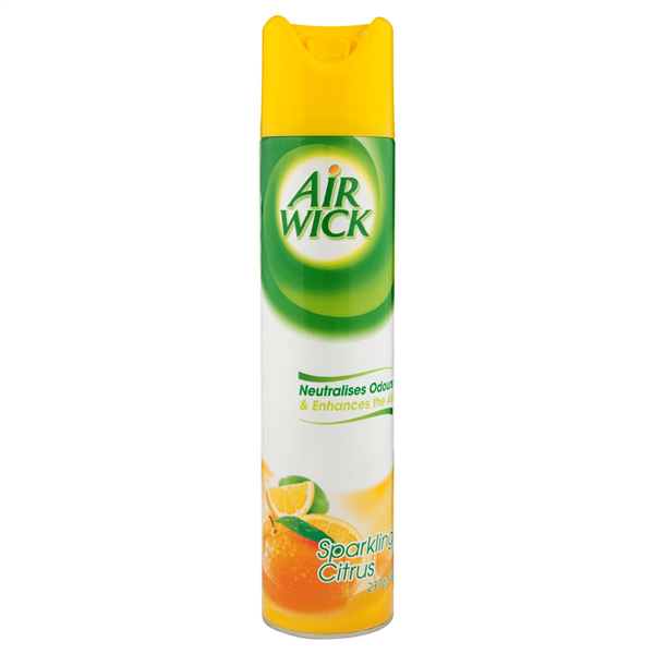 Ready-to-use aerosol air freshener designed to instantly eliminate odours and release a bright, uplifting sparkling citrus fragrance