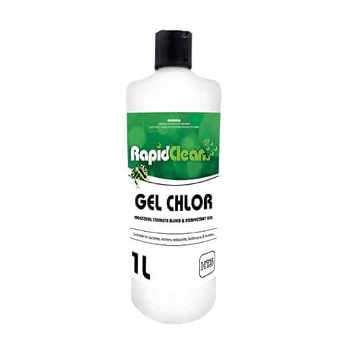RapidClean Gel Chlor is a chlorine-activated bleach and disinfectant in a thickened gel form with a fresh eucalyptus fragrance