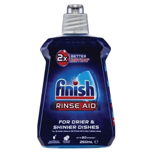 Finish Dishwashing Rinse Aid can be used to clear away detergent and food residues from dishes in your dishwasher