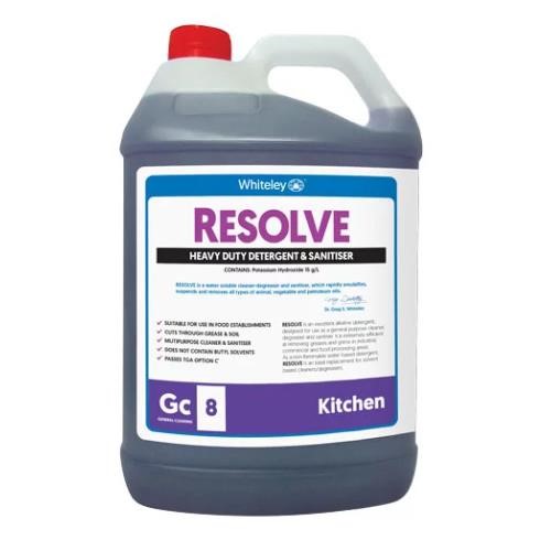 Whiteley Resolve All Purpose is a powerful water-soluble cleaner, degreaser and sanitiser designed to rapidly emulsify and remove animal, vegetable, and petroleum oils