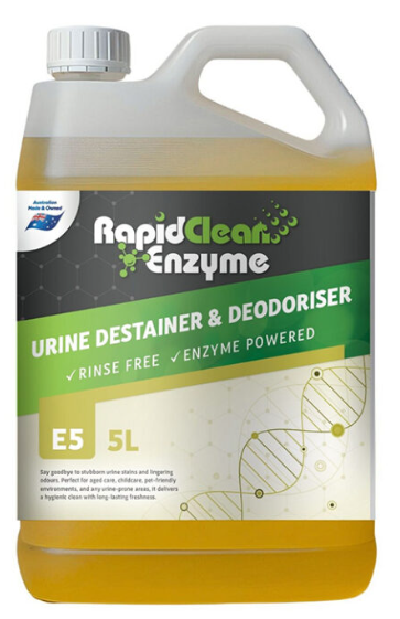 RapidClean Enzyme Urine Destainer and Deodoriser is a ready-to-use, all-natural solution specially formulated to eliminate urine stains, odours, and deposits from all surfaces