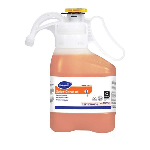 Diversey SmartDose Stride Citrus HC 1.4L is a highly concentrated neutral floor cleaner designed for efficient cleaning of hard floors