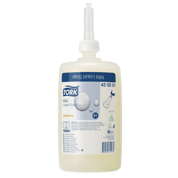 Tork Mildly Scented Liquid Soap has a fresh scent plus moisturising and replenishing ingredients for a gentle hand washing